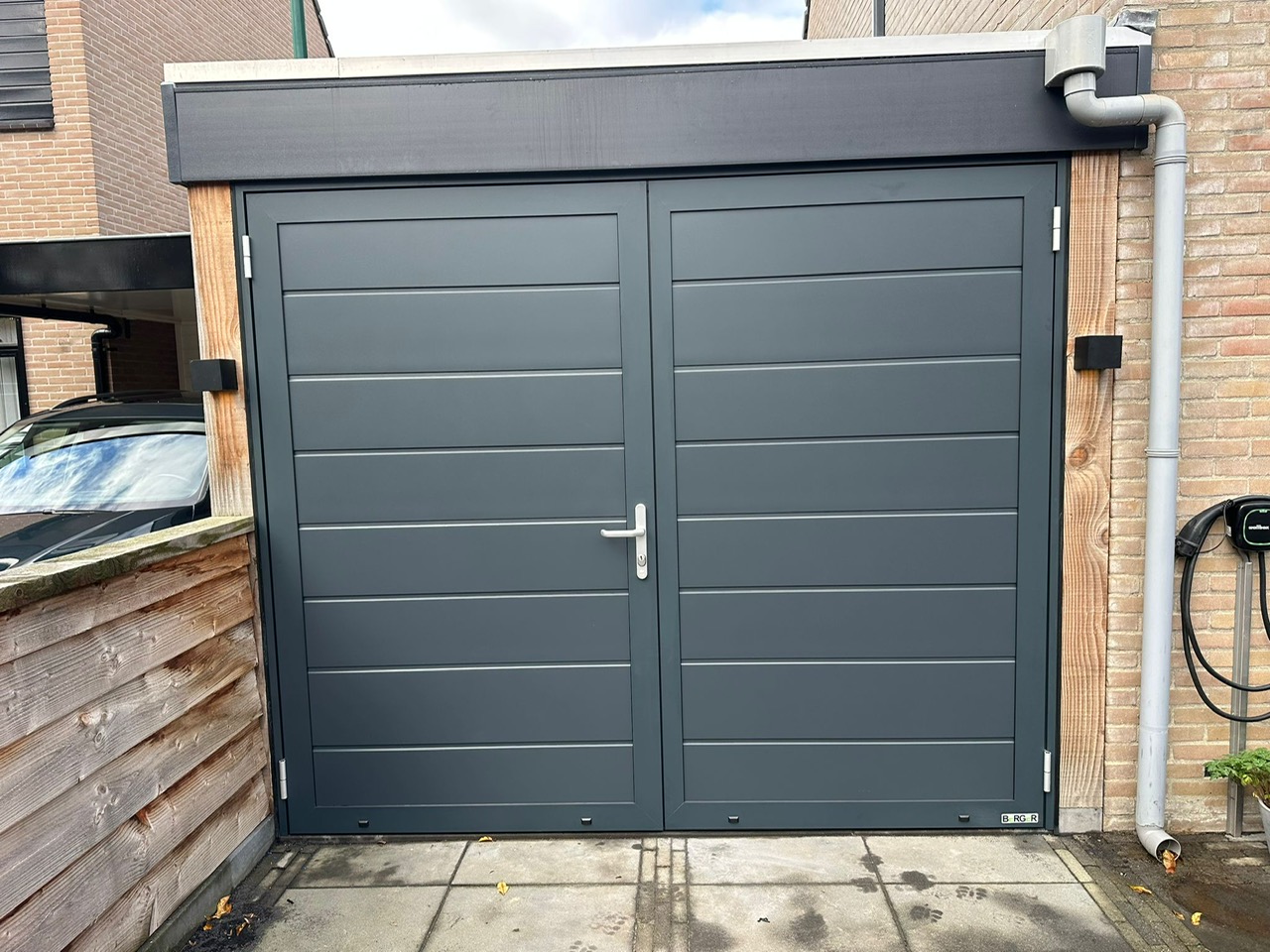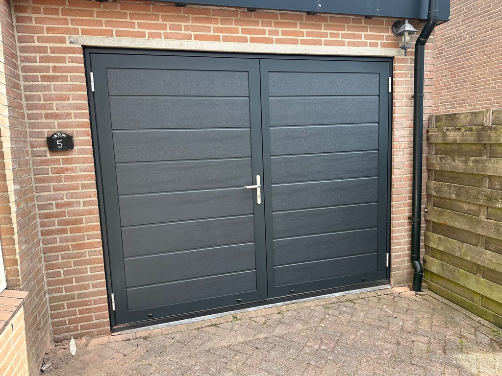 Deze openslaande poorten zijn opgebouwd uit 40 mm dikke geïsoleerde panelen en zijn uitgevoerd met een mat fijnstructuur. De buitenzijde heeft een duurzame matte structuurlak die zorgt voor een luxe, moderne en stijlvolle uitstraling.