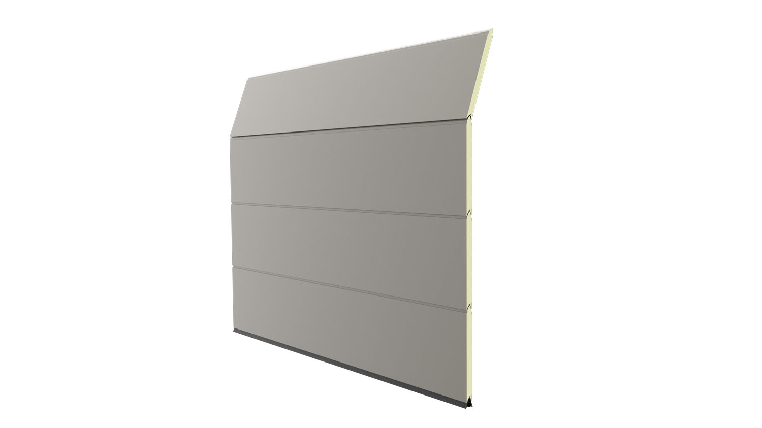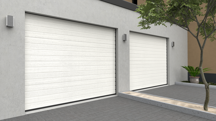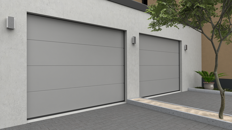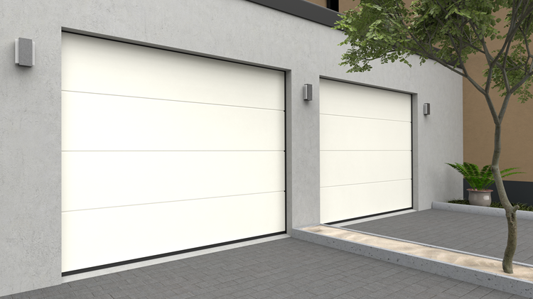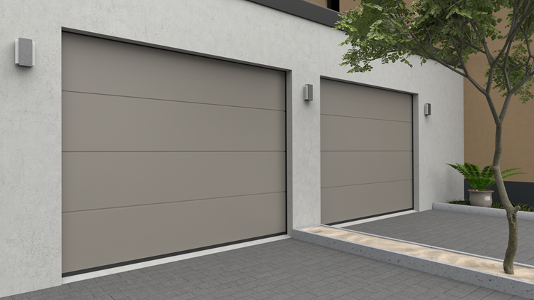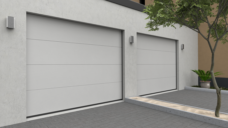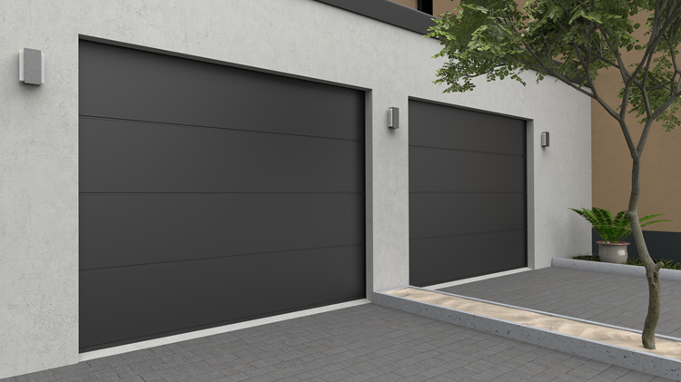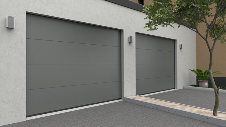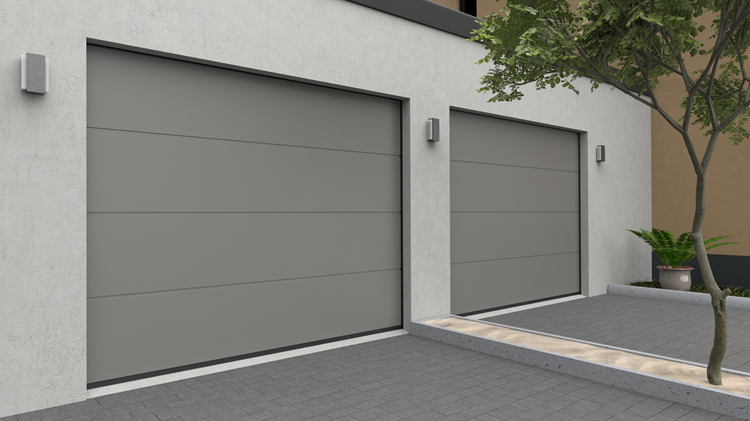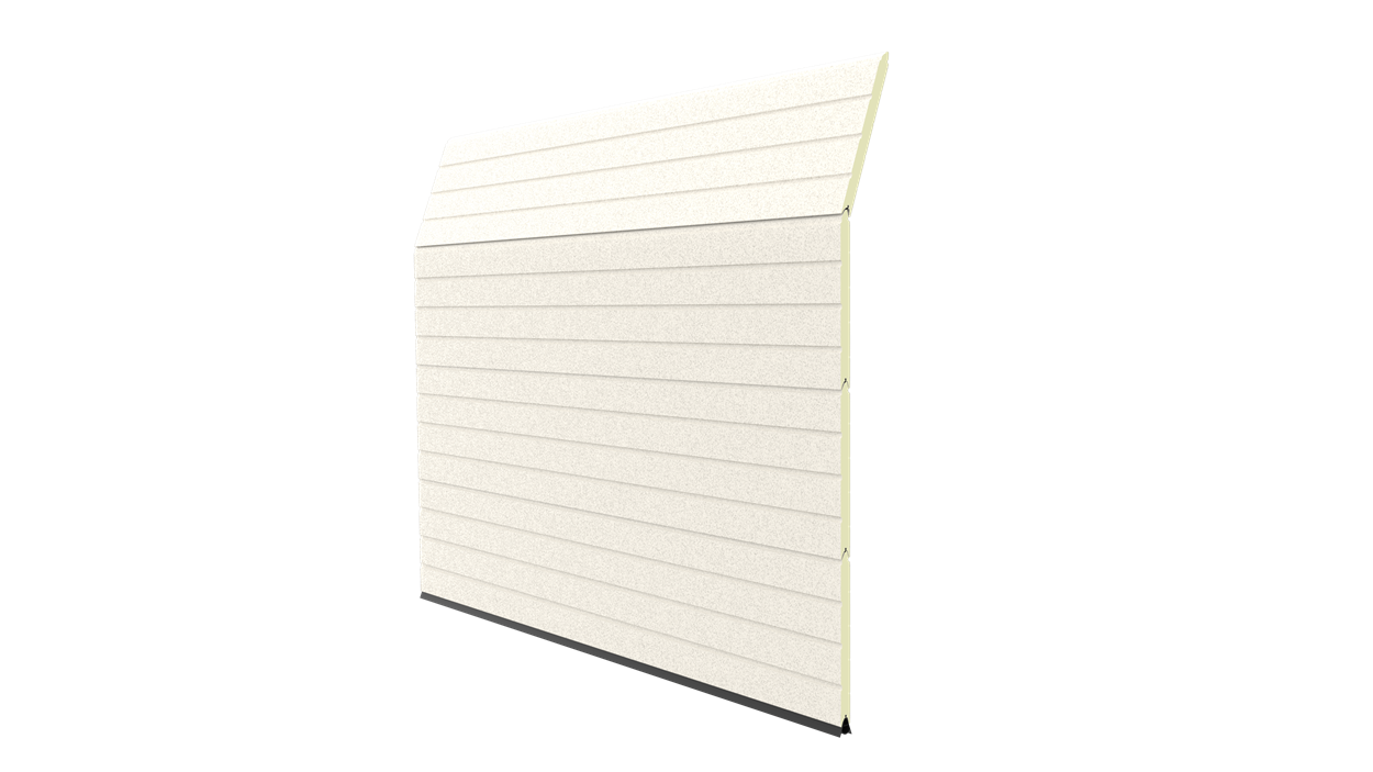Deze 40 mm dikke geïsoleerde garagepoort heeft één diepe horizontale belijning met een glad oppervlak. Standaardkleuren zijn RAL 9016, RAL 7016 en RAL 9005.
