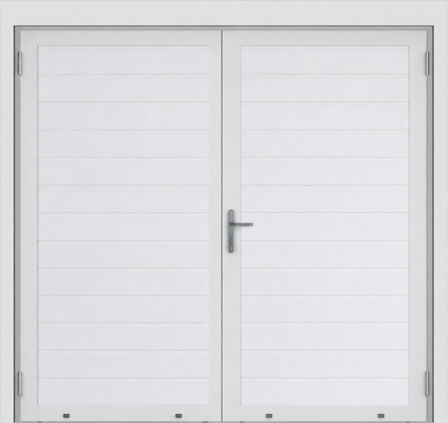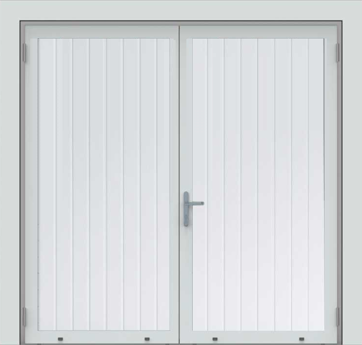 Deze openslaande poorten zijn opgebouwd uit 40 mm dikke geïsoleerde panelen zonder extra horizontale belijningen en het oppervlak is glad uitgevoerd. Standaardkleur is RAL 9016.