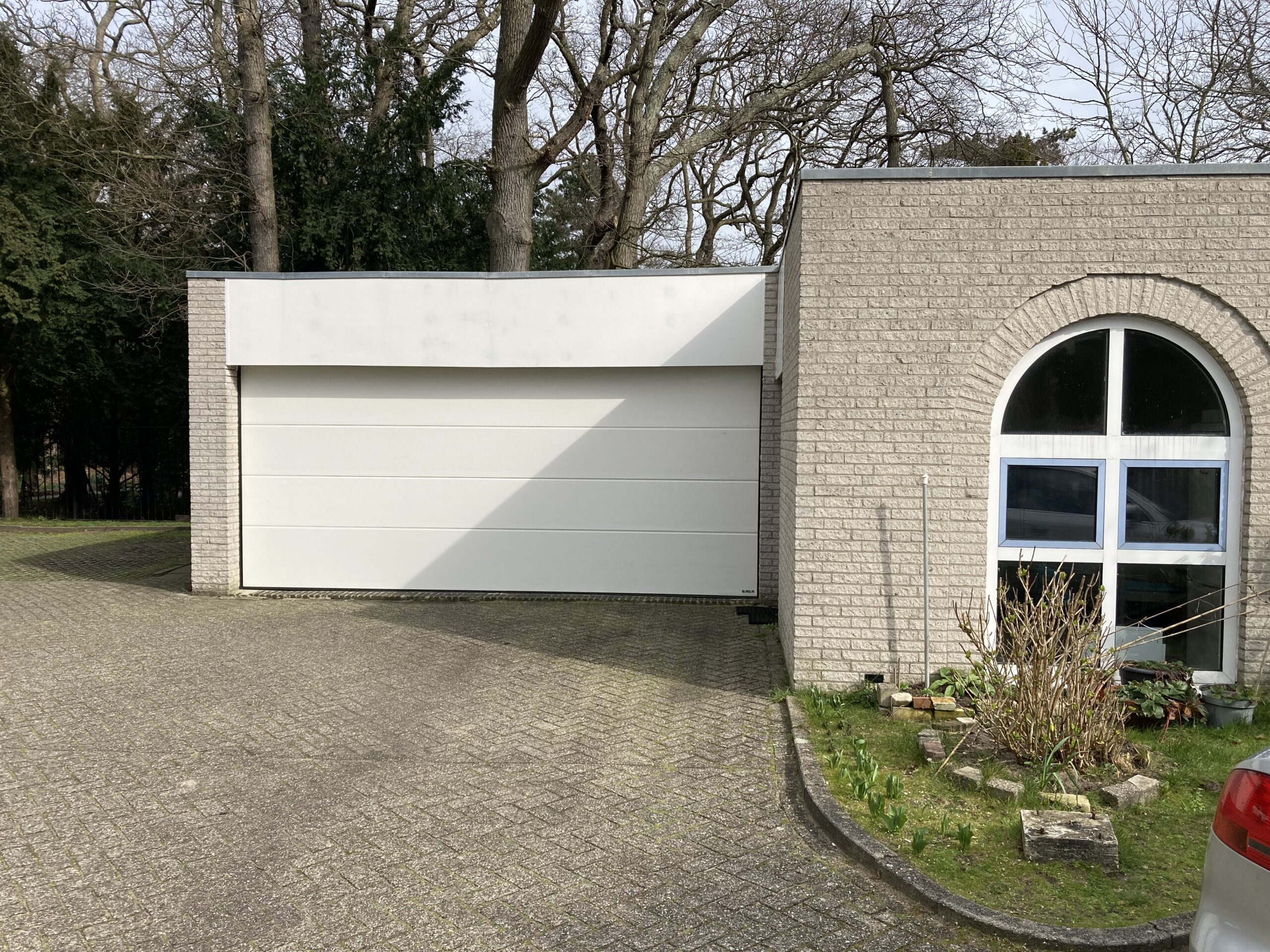 De klant wilde van de garage een werkruimte maken die in de winter goed afsluitbaar is. Een sectionale garagepoort met loopdeur bleek hiervoor de juiste oplossing. Om extra ruimte te creëren is een 3-zijdig montageprofiel toegepast, waardoor de garagepoort circa 20 cm naar voren is geplaatst. De garagepoort zelf wordt nauwelijks gebruikt, maar de loopdeur heeft zich in de praktijk als een waardevolle investering bewezen.