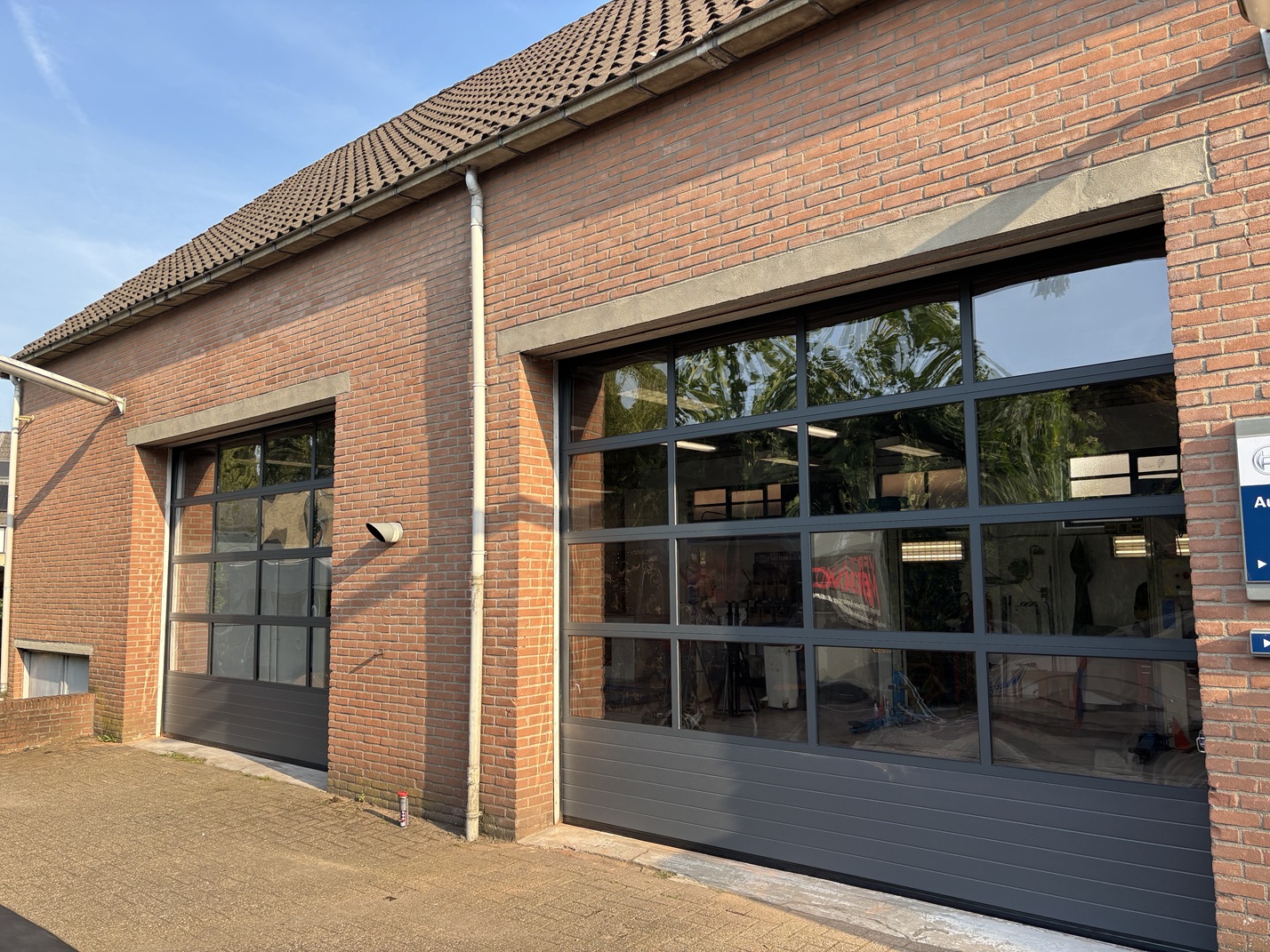 Voor een autobedrijf hebben wij twee zeer nette industriepoorten geleverd en gemonteerd. De poorten zijn uitgevoerd met A40 panelen en vier glassecties, afgewerkt in de kleur RAL 7016 mat fijnstructuurlak. De overheadpoorten worden bediend met een kettingtakel en zijn voorzien van alle benodigde beveiligingen. De glassecties zorgen voor voldoende lichtinval in de werkplaats, terwijl het geheel perfect aansluit bij de uitstraling van het bedrijf.