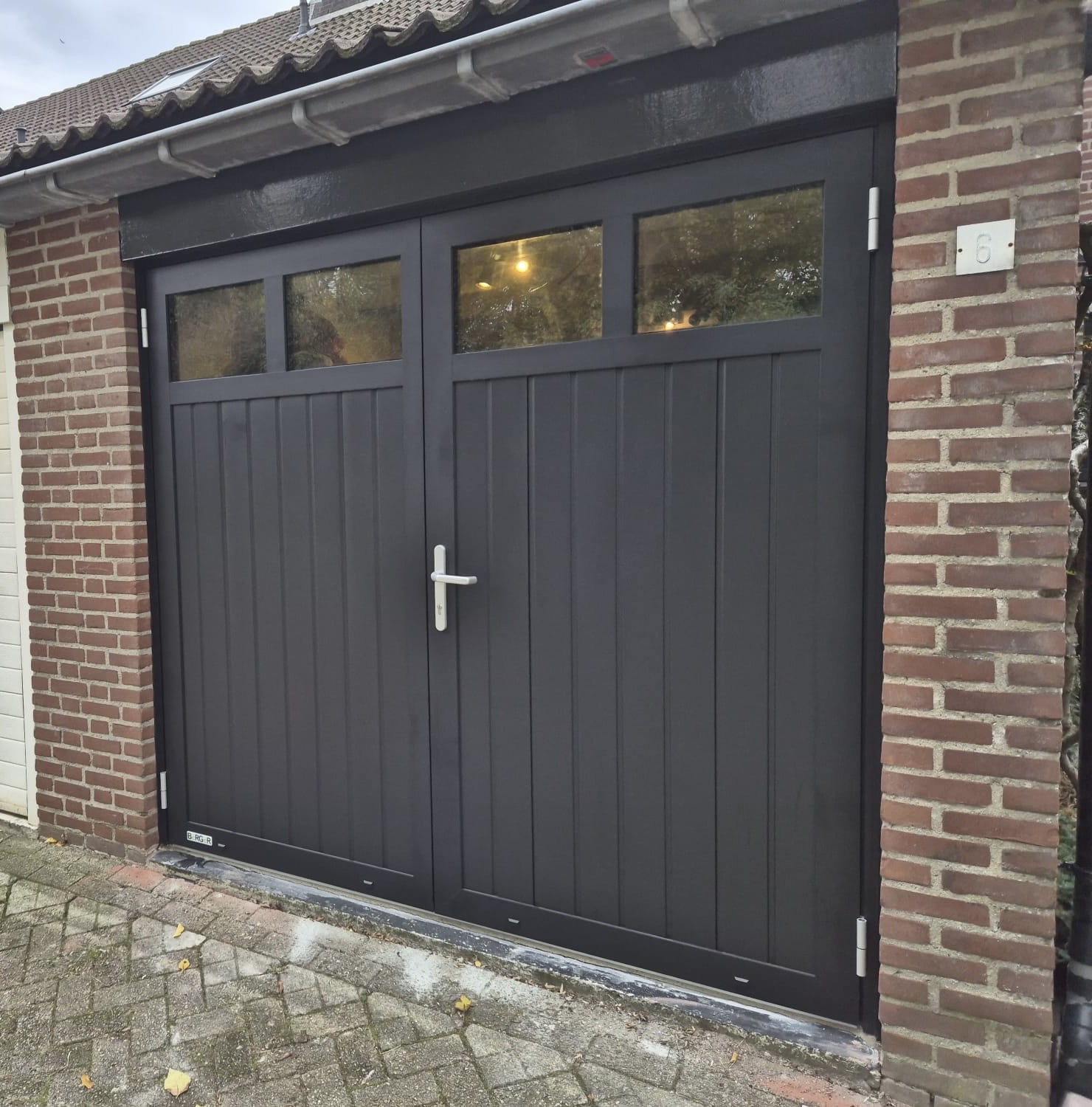 Drie naastgelegen buren kozen ervoor om hun oude kantelpoorten te vervangen door nieuwe openslaande garagepoorten. Het resultaat is een strakke, gebruiksvriendelijke oplossing met moderne uitstraling, meer loopgemak en betere isolatie. Dankzij de uniforme uitvoering vormt het geheel nu één stijlvol en harmonieus aanzicht.