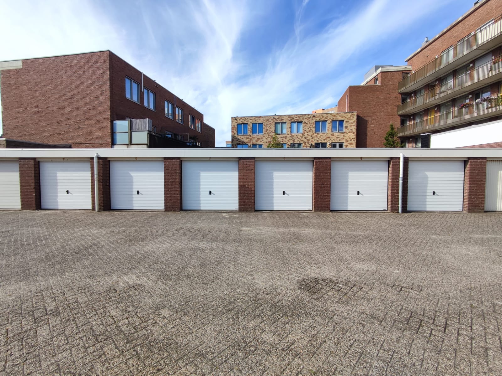 Voor een VvE hebben wij zes sectionale garagepoorten mogen leveren en monteren. De garagepoorten zijn uitgevoerd met handbediening en voorzien van een cilinderslot, wat zorgt voor een eenvoudige en betrouwbare bediening. Gekozen is voor de standaardkleur RAL 9016, verkeerswit, waardoor de deuren een frisse en tijdloze uitstraling hebben en mooi aansluiten bij het gebouw. Het resultaat is een praktische en verzorgde oplossing voor alle gebruikers van het complex.